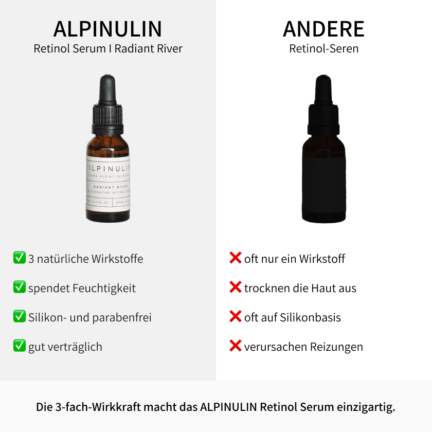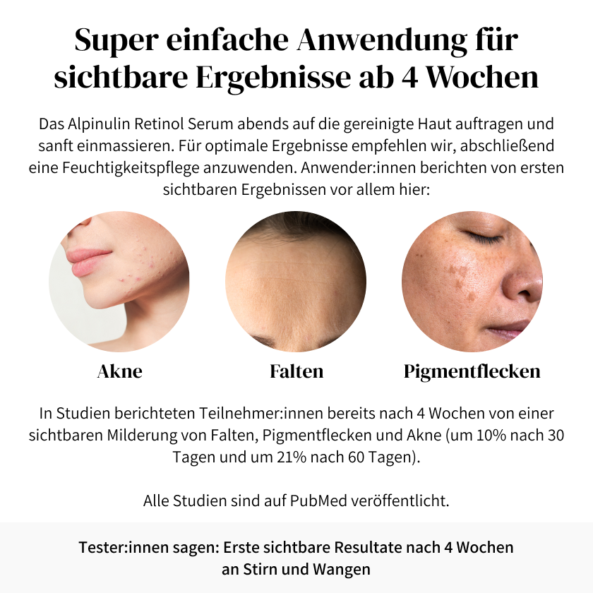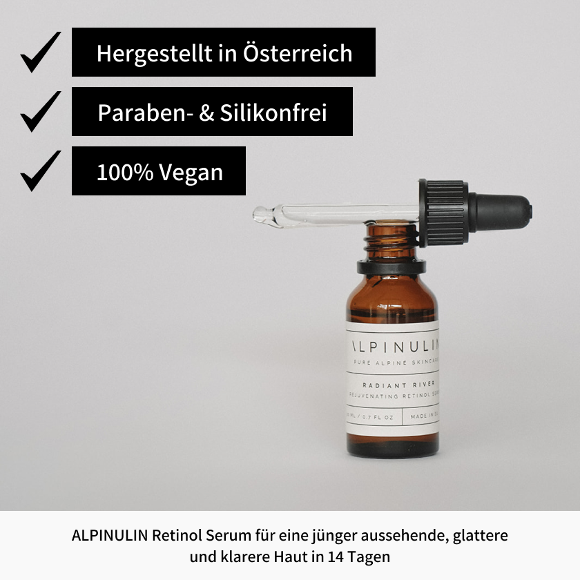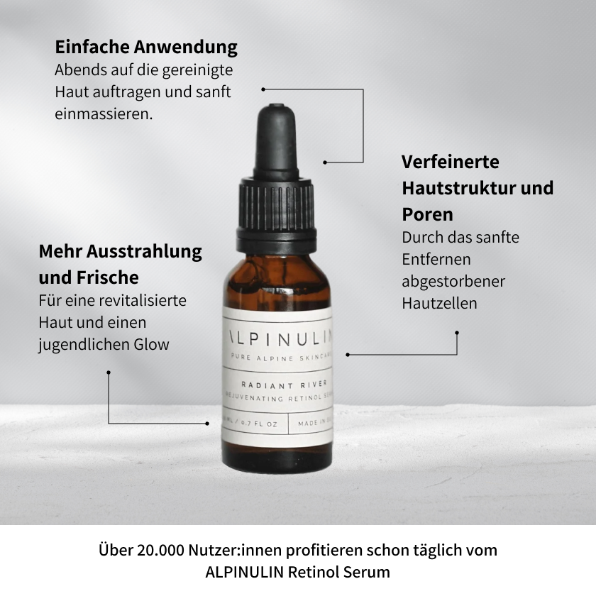 Sichere dir noch heute das effektive ALPINULIN Retinol-Serum für eine jünger aussehende, klarere und glattere Haut